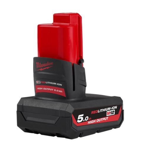 - M12™ REDLITHIUM™-ION HIGH OUTPUT™ 5.0Ah Battery delivers 25% more power vs M12B4