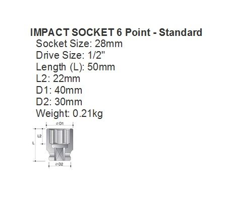 SOCKET IMP ACTION 1/2"DR STD 28MM