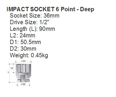 - SOCKET IMP ACTION 1/2"DR DEEP 36MM