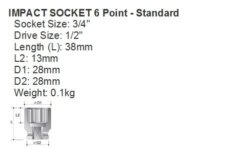 - SOCKET IMP ACTION 1/2"DR STD 3/4"