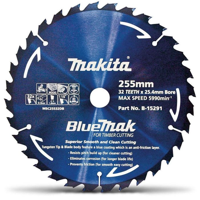 - TCT SAW BLADE MAKITA WOOD BLUEMAK 255MMX32T