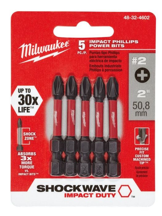 - MILWAUKEE SHOCKWAVE� POWER BIT PHILLIPS 50MM 5PK