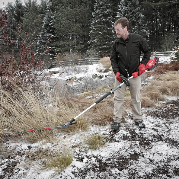 Our M18 FUEL QUIK-LOK Articulating Hedge Trimmer Attachment is powered by the M18 FUEL Power Head w/ QUIK-LOK and is compatible with our QUIK-LOK Attachment System. The attachment's articulating mechanism allows for 270° rotation of the blade set, which gives you 13 operating positions and 1 storage position. The hedge trimmer attachment boasts a 508mm (20") blade with 25mm cut capacity allowing you to clear more material in a single pass. The hedge trimmer attachment includes a tip guard to prevent damage to the blade and surrounding work area, as well as a padded grip for optimal hand placement and increased comfort. The QUIK-LOK Attachments feature protected drive shafts for increased durability against drops and storage elements. The hedge trimmer attachment also features optimised gearing to manage the cordless M18 FUEL Power Head RPM output specifically for hedge trimming applications.
