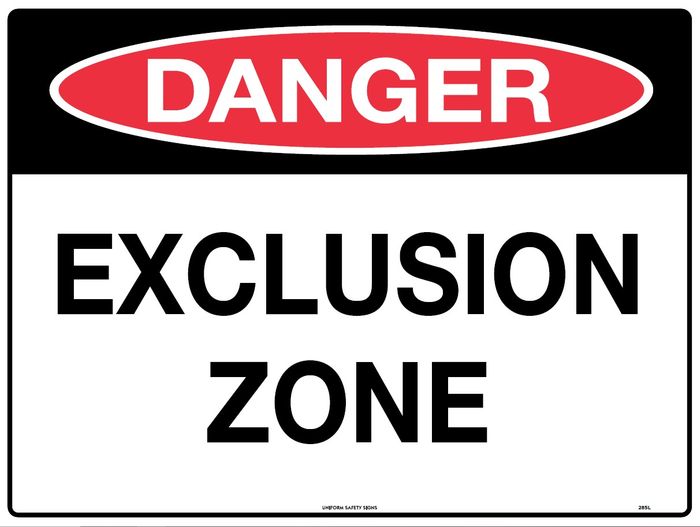 SIGN DANGER EXCLUSION ZONE MTL 600X450MM