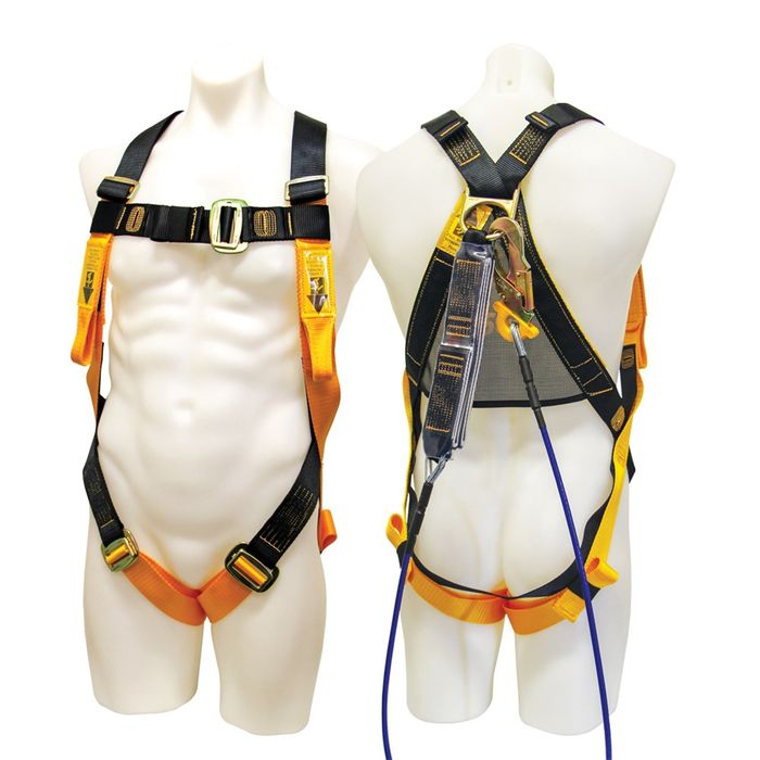 - Complete with 2m wire shock absorbing lanyard permanently attached to the rear D ring